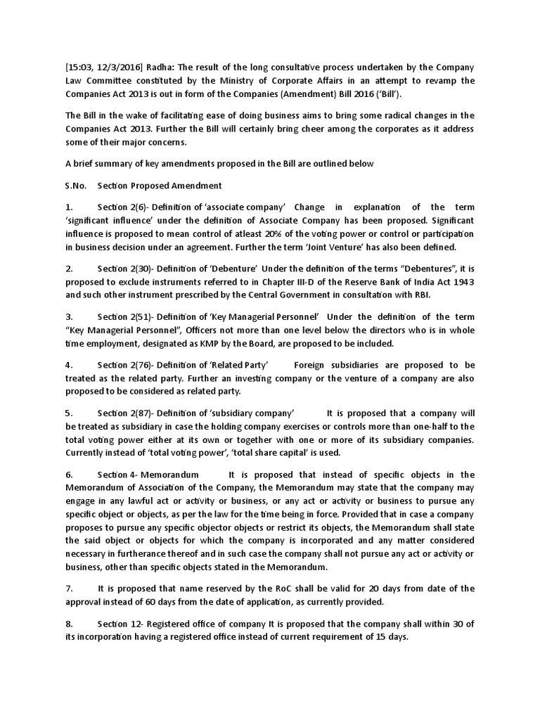 Companies amendment bill 2016 is such a bill which seeks to amend various provisions of companies act 2013.
